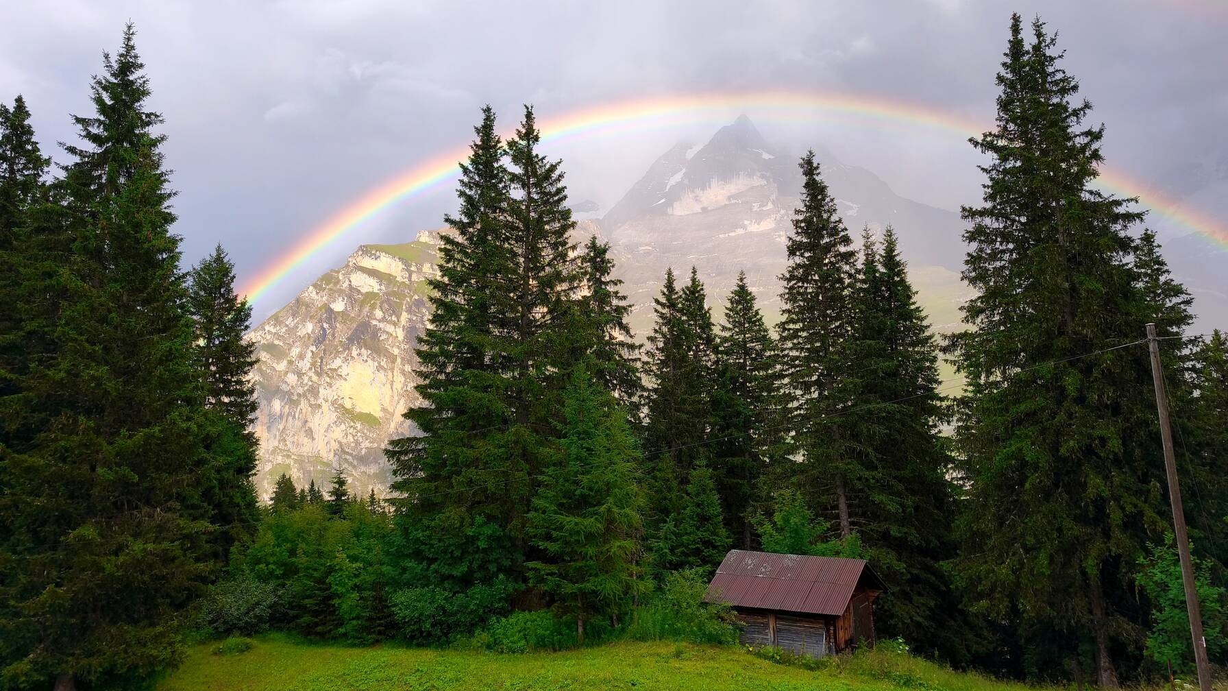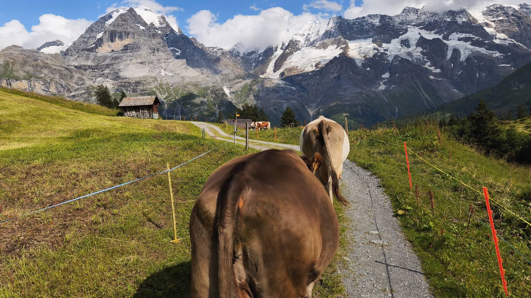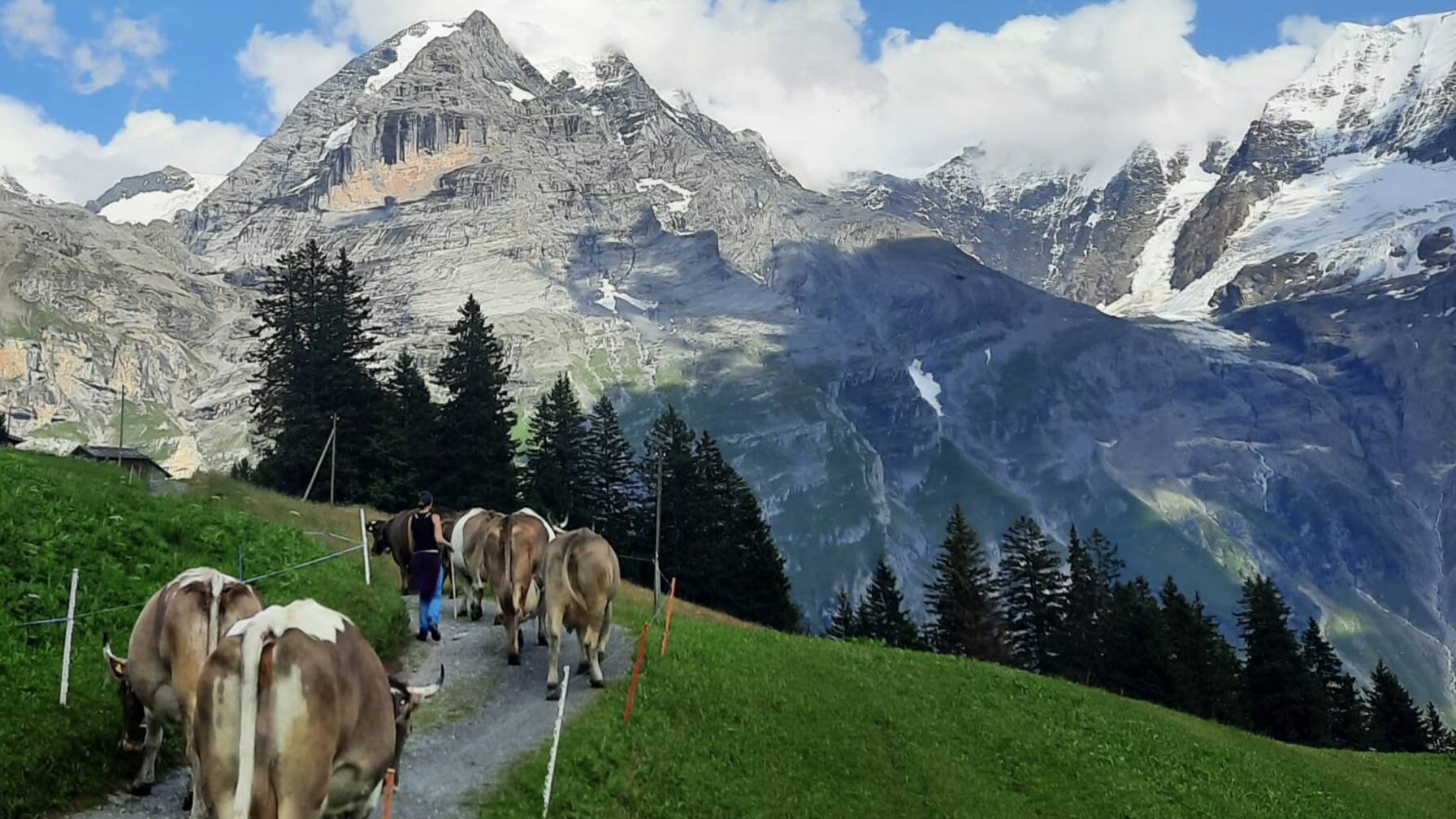 Was ihr besonders in Erinnerung bleibt? Das Panorama mit Blick auf Eiger, Mönch und Jungfrau. Das Alpenglühen am Abend. Ein Regenbogen nach einem Sommerregen. Das Lachen der Bäuerin. Und die Kälbchen, die sich geduldig streicheln liessen.